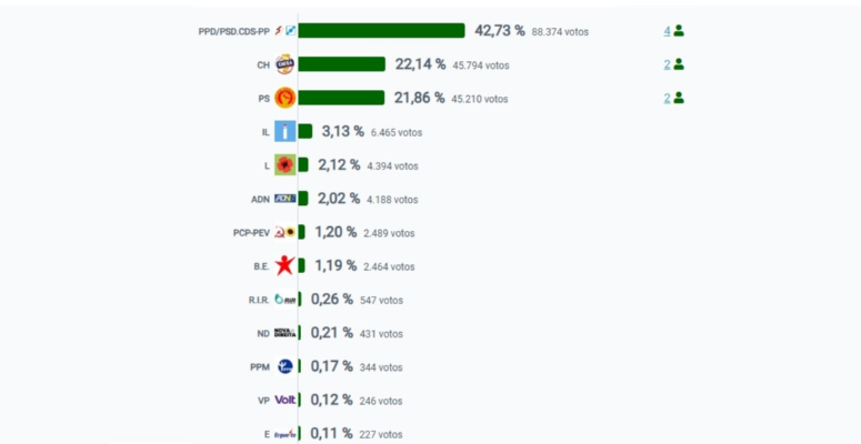 A AD e o Chega reforçaram a votação no distrito de Viseu comparativamente às últimas eleições.