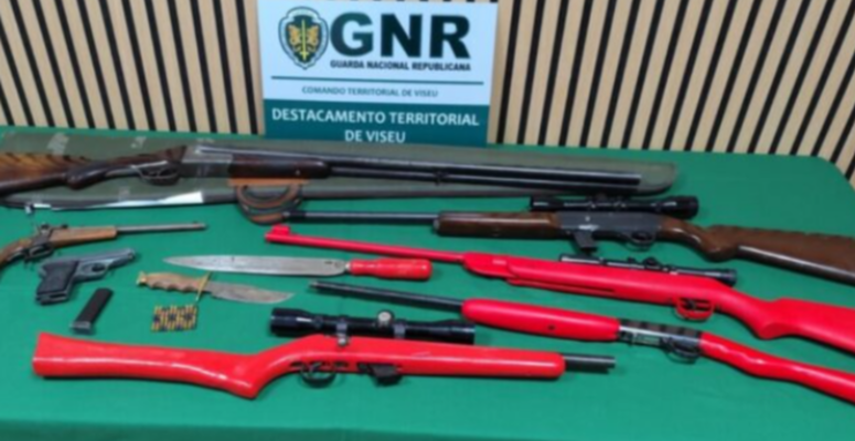 Homem acabou detido por posso de arma proibida e os militares apreenderam várias armas de fogo e armas brancas